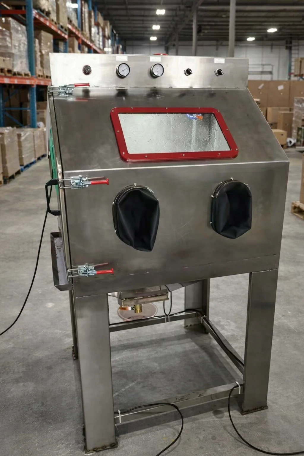 Natstraalcabine model WB9080, uitgevoerd met wiper-systeem én draaiplateau voor optimaal gebruiksgemak. Deze cabine is ontworpen voor het professioneel reinigen, ontroesten, matteren en voorbehandelen van uiteenlopende materialen met een strak en egaal eindresultaat.